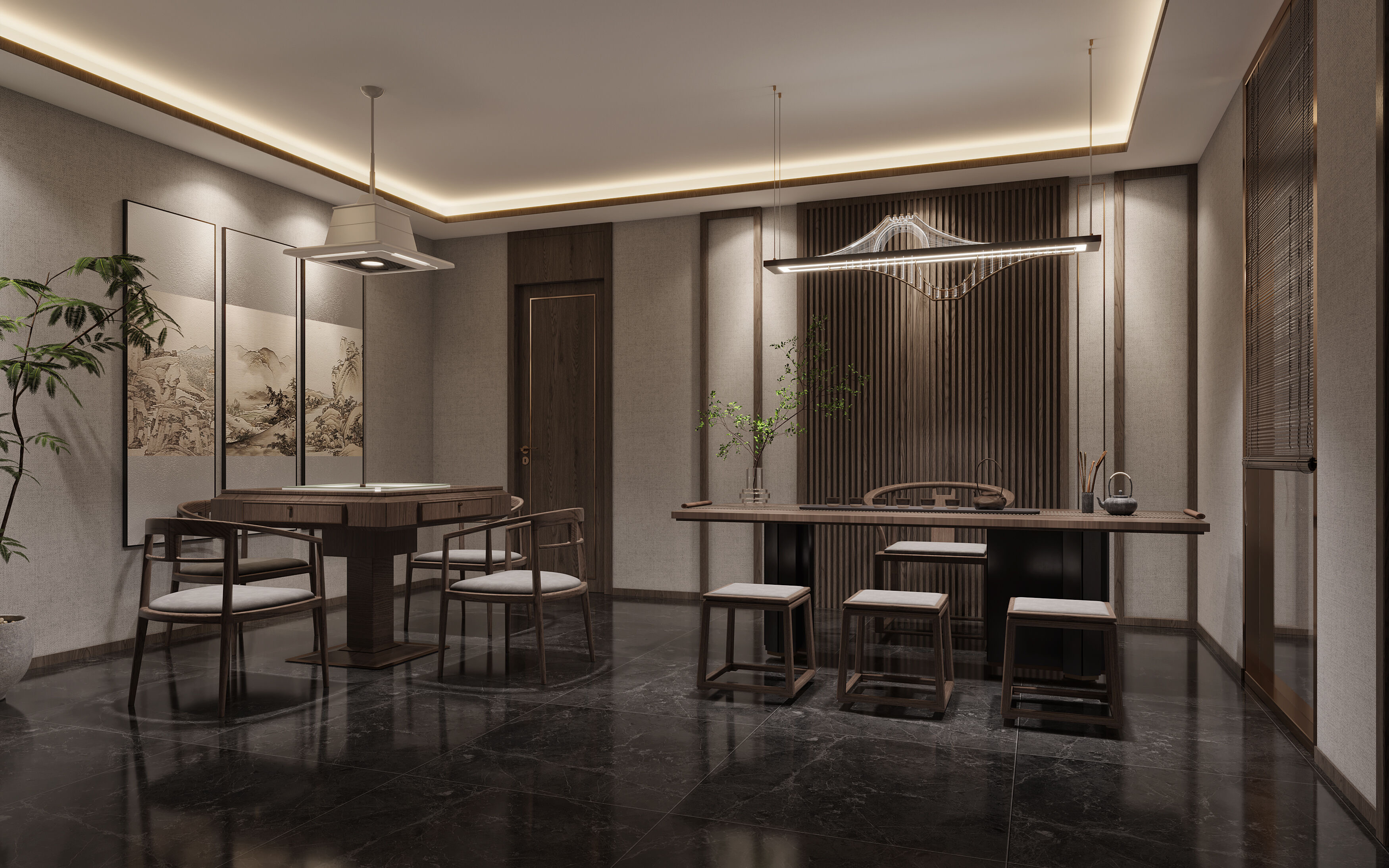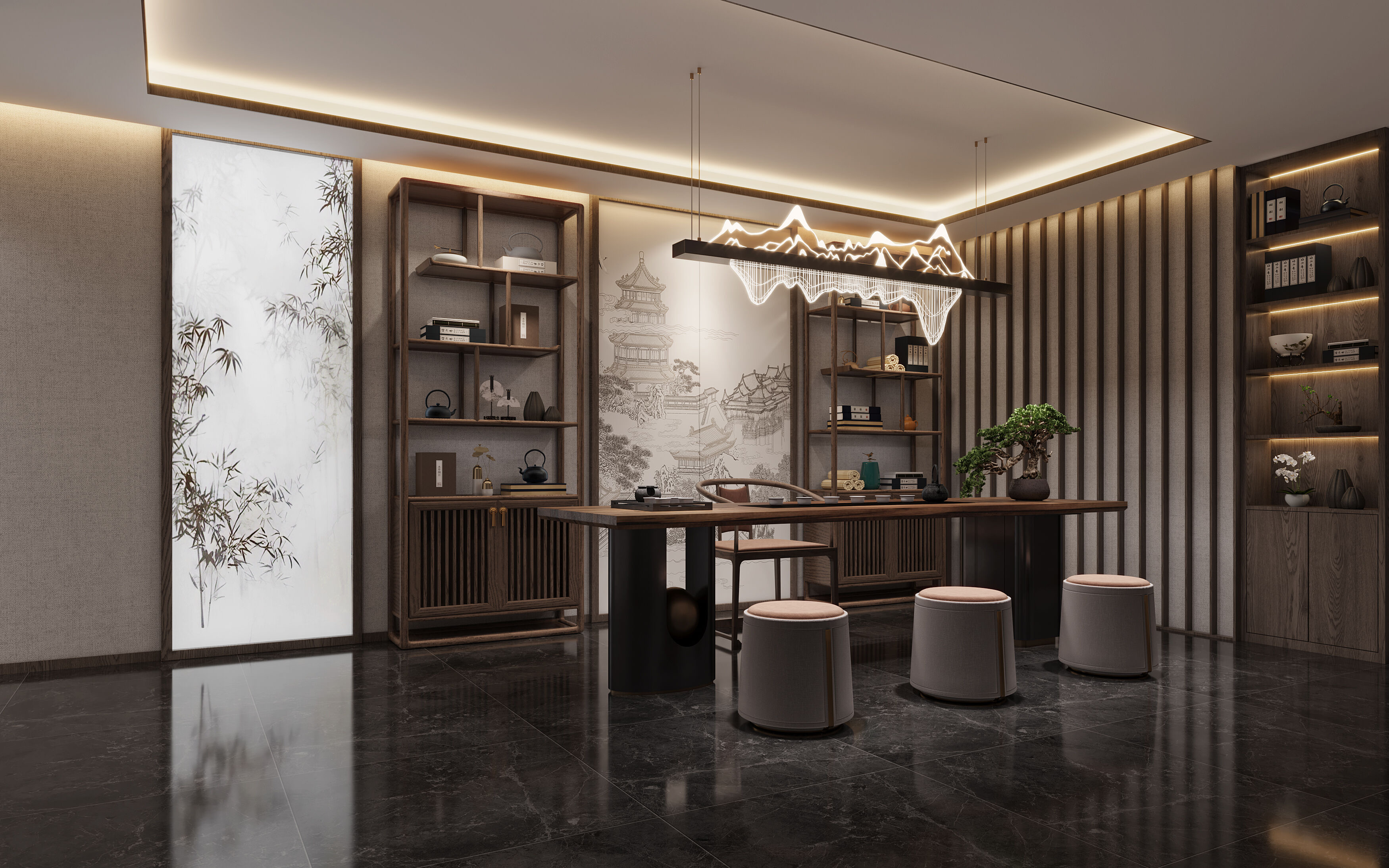 外間休閑區(qū)域,環(huán)境優(yōu)雅僻靜;在休息時(shí)可以在落地窗前眺望風(fēng)景,或者與兩三好友與茶臺(tái)旁聊一聊彼此近況,談一談大夢人生;在輕松愜意的環(huán)境中,放下塵囂,添些閑適,清水煮茶,偷這半世浮生。