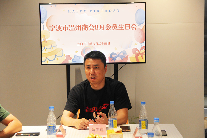 2023年8月24日下午,寧波市溫州商會(huì)8月生日會(huì)員相約在副會(huì)長(zhǎng)齊建環(huán)企業(yè)—寧波萬(wàn)宏房地產(chǎn)有限公司,恭賀生日、交流學(xué)習(xí)、暢敘鄉(xiāng)情、共度美好時(shí)光。本次生日會(huì)由常務(wù)副會(huì)長(zhǎng)周王建主持。