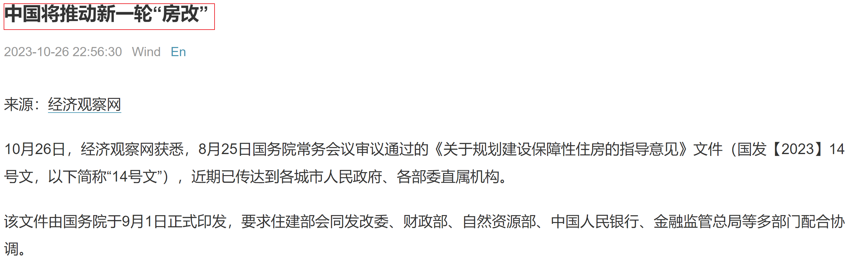 經(jīng)濟(jì)觀察網(wǎng)給出的新聞標(biāo)題是:中國(guó)將推動(dòng)新一輪“房改”。
