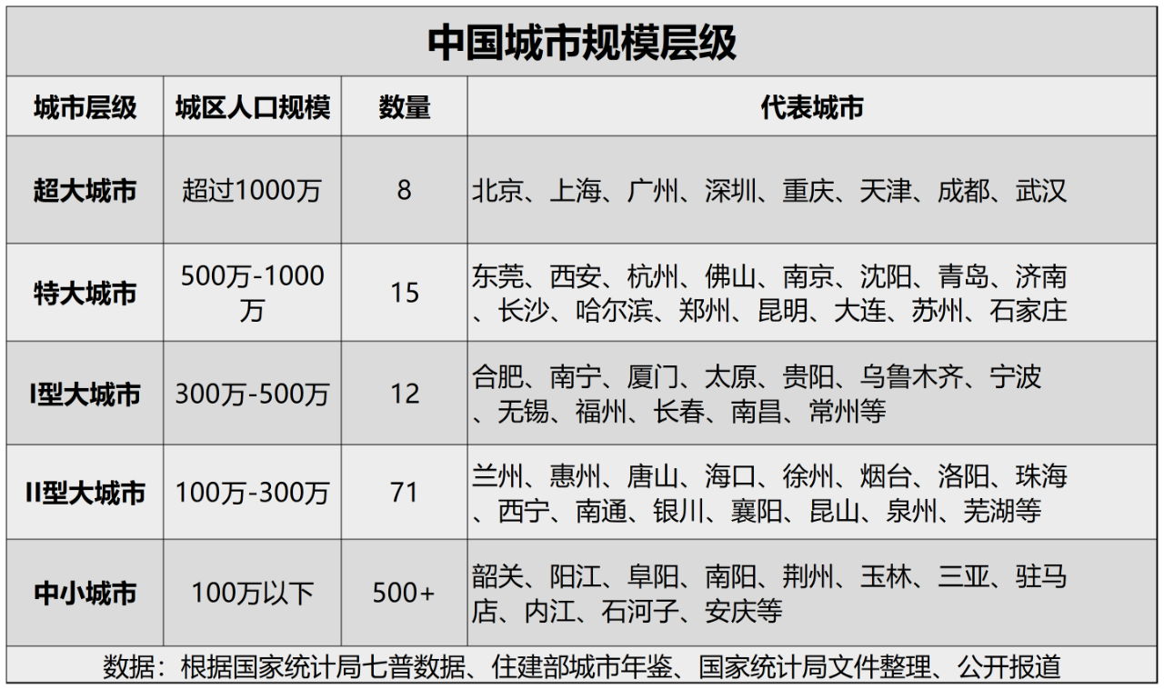 但三年時(shí)間,變化很大,其中武漢隨著人口回流,城區(qū)人口已經(jīng)突破千萬成為了超大城市,蘇州因?yàn)楣I(yè)園區(qū)的行政代碼升級(jí),成功晉級(jí)為特大城市。石家莊官方也在今年披露城區(qū)人口突破了500萬,晉級(jí)特大城市。